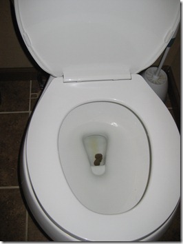 It’s Bella poo, from her actually being on the toilet. Yes folks, I saw she was trying to push and quickly ran her into the bathroom, where I somehow managed to get off her pants and diaper and hold her over the toilet. It was a workout for me, I’m not kidding. And then once she went, I had to figure out how to get the diaper and pants back on. Basically I had to sit on the floor (thankfully I had just cleaned this toilet/bathroom), and put Bella over my lap. I’m not sure this is quite practical, but I wanted to give it a try. Now if two people are home it would be much easier, and probably having a kids seat cover so she could actually rest on it would help too.